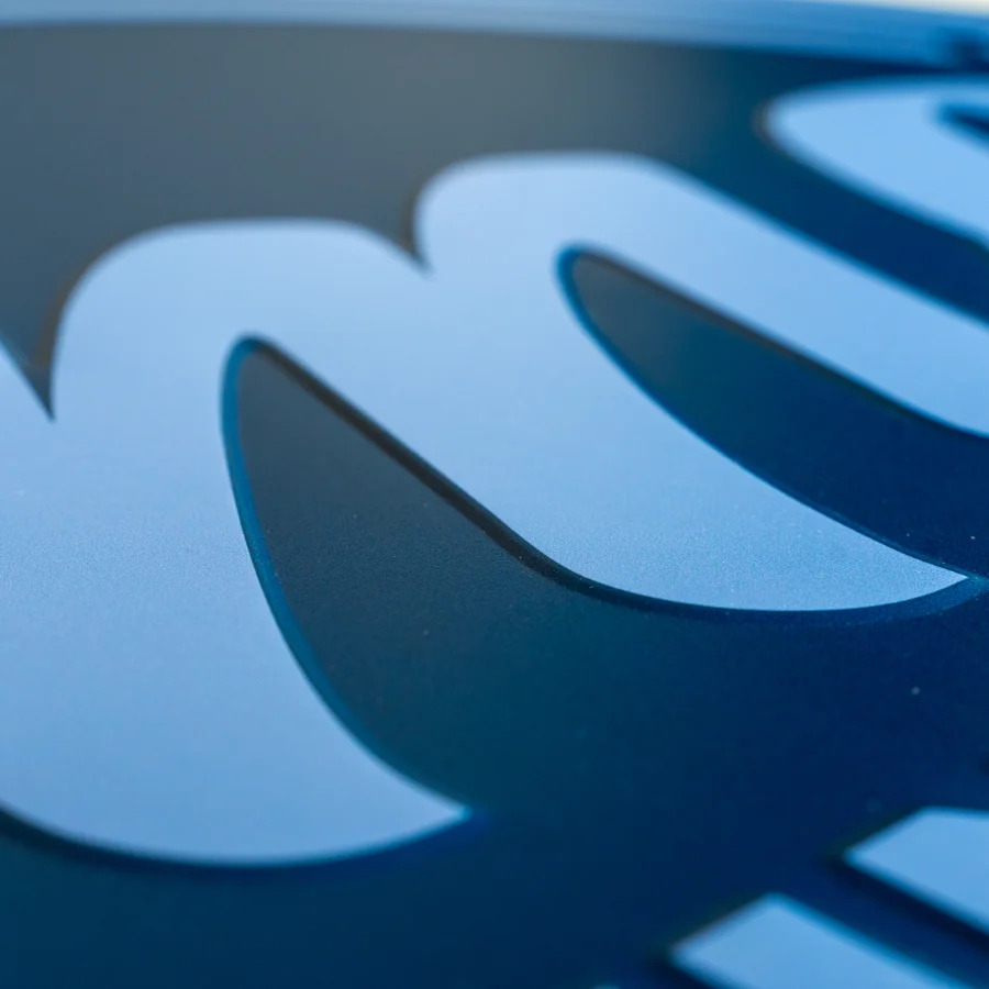 Laminated vinyl mounted to Dibond Aluminum Composite Material (ACM) allows for maximum durability